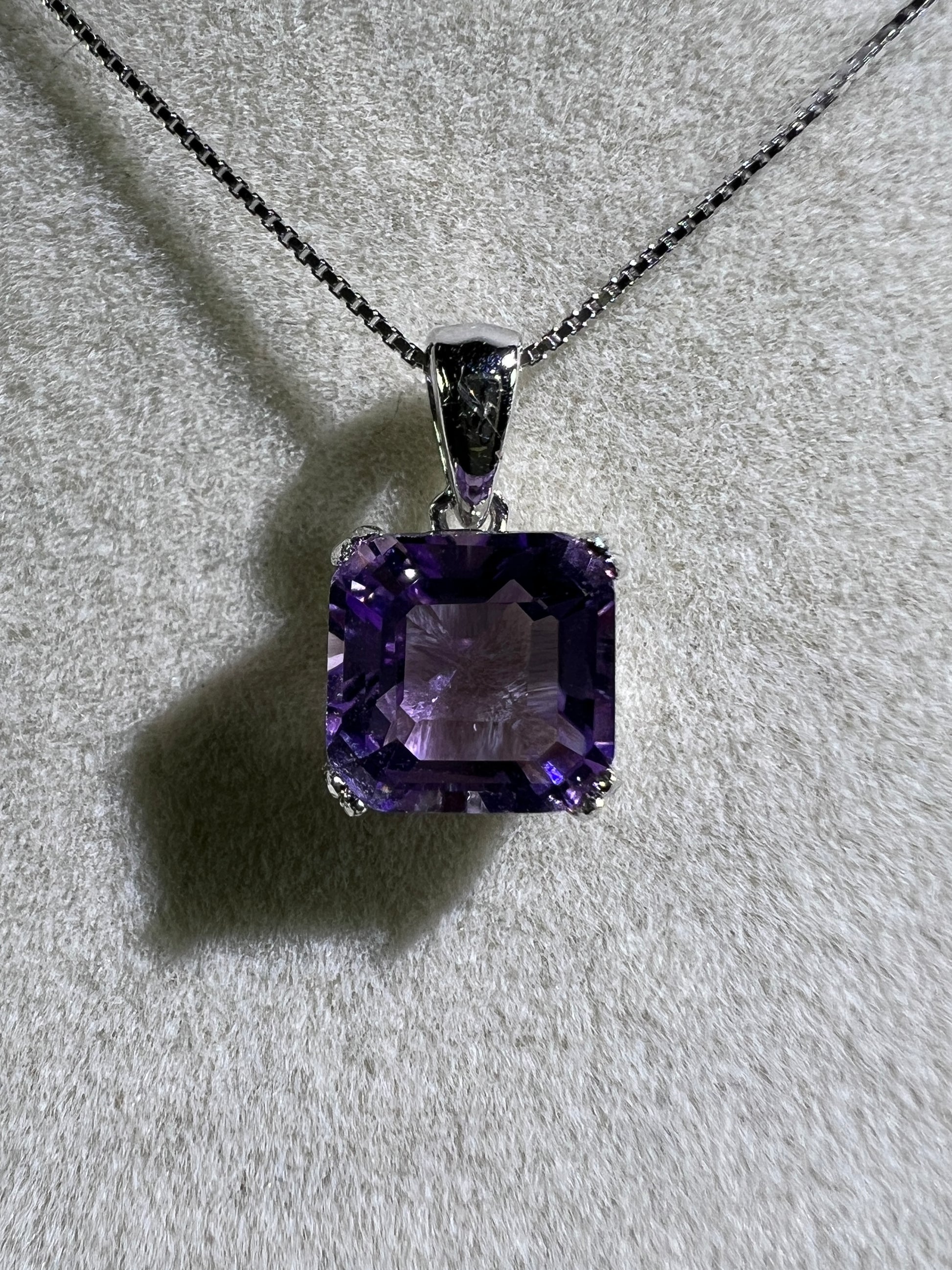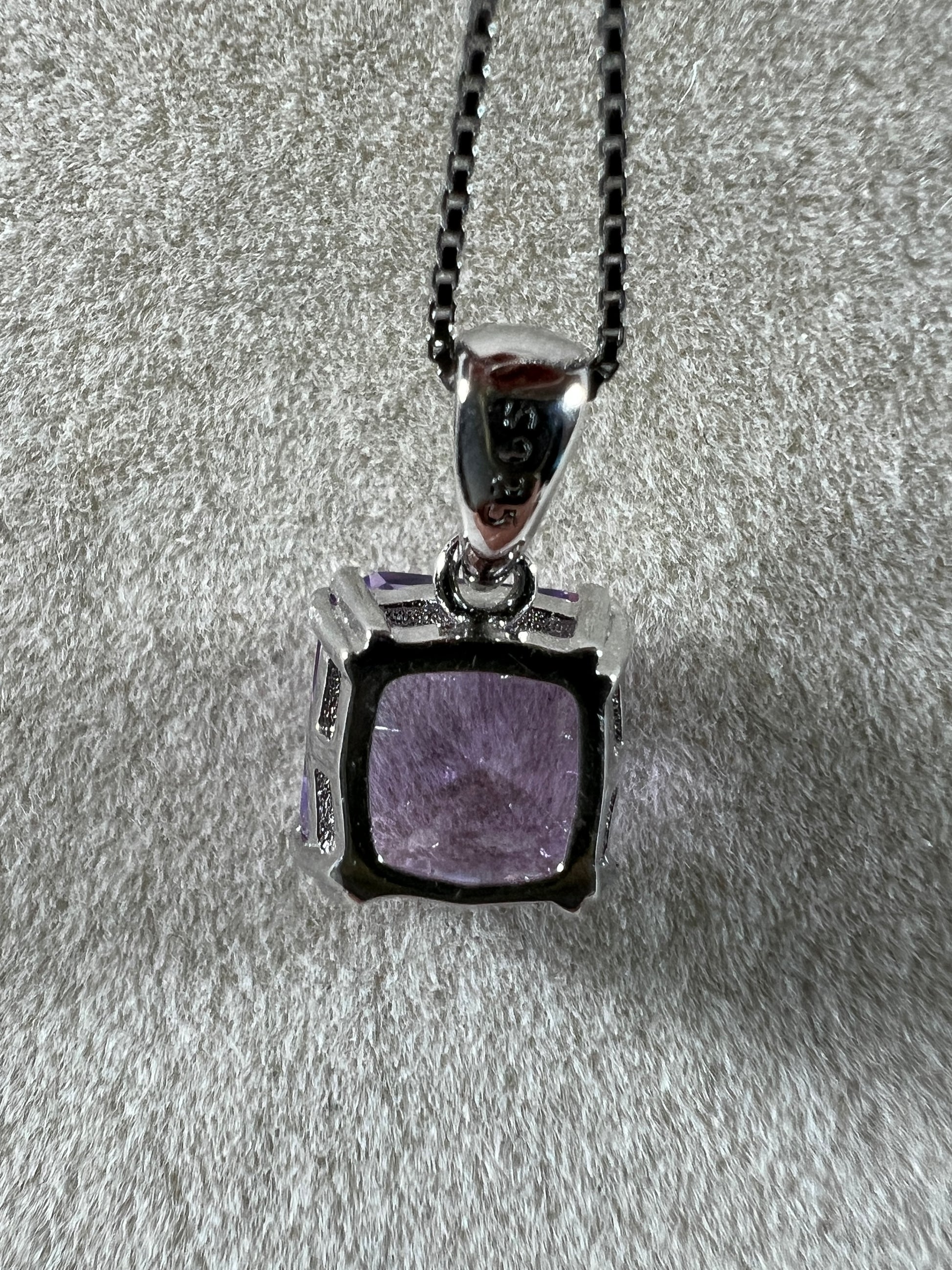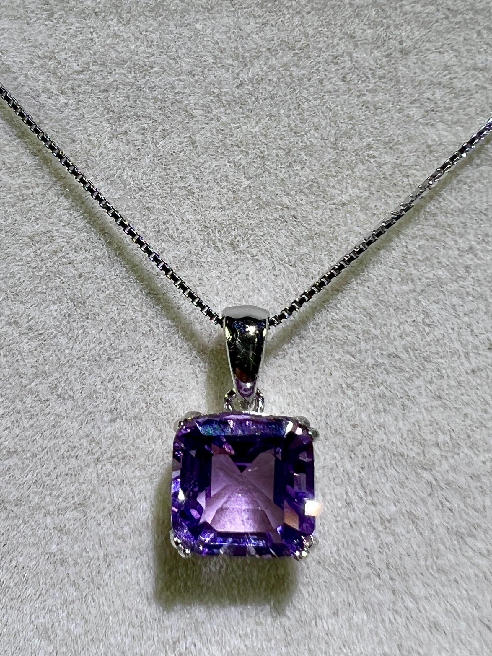 All natural, beautiful Amethyst gemstones have been prized as semi precious gemstones for thousands of years. Only the best Amethyst is chosen to be faceted into gemstones. Incredible deep purple and lilac colors, with excellent clarity. Includes an 18 inch S925 silver box style necklace.
