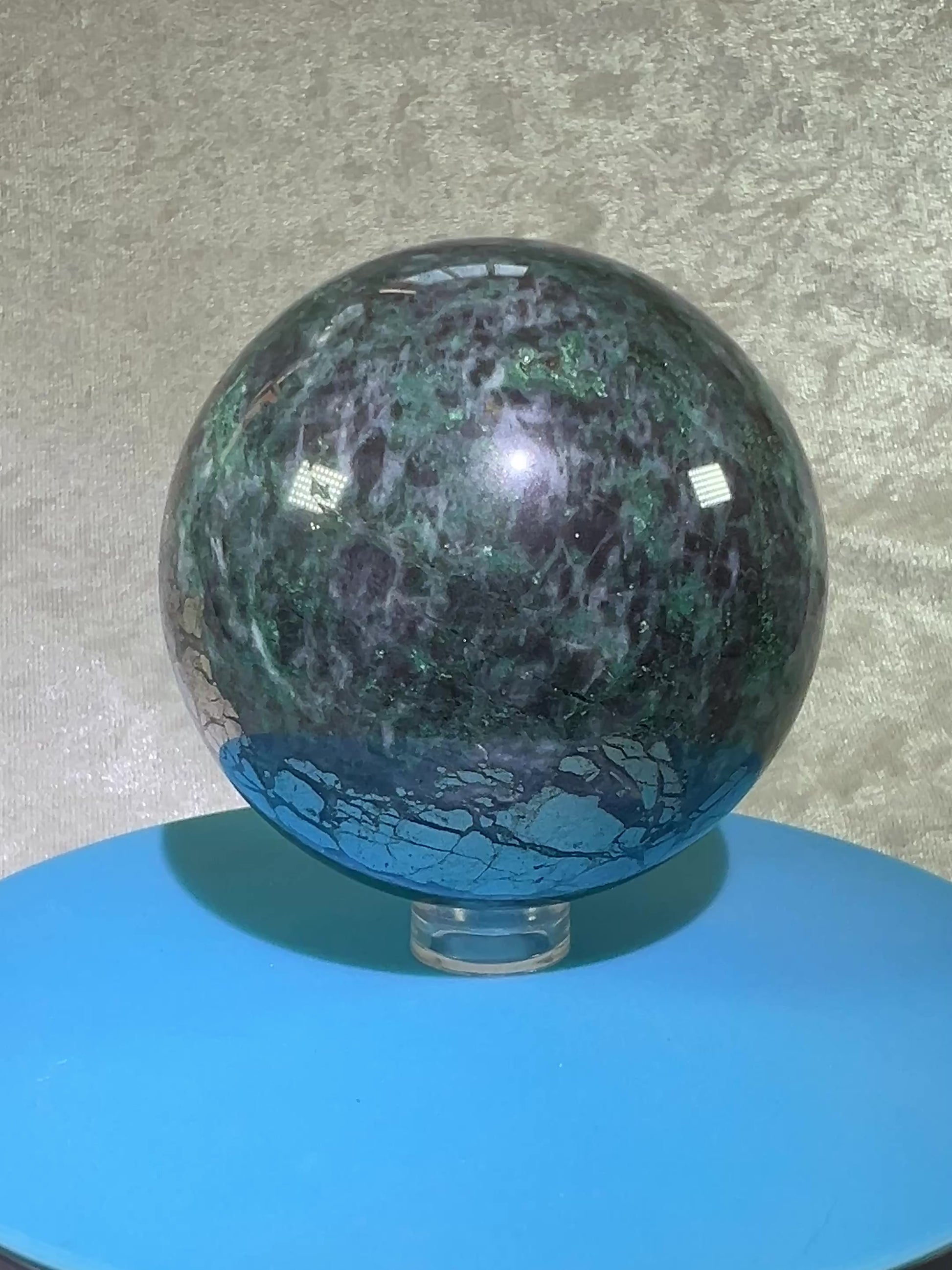 Atacamite And Pyrite Sphere. 64mm. High Quality Rare Sphere. Gorgeous Color Combination.