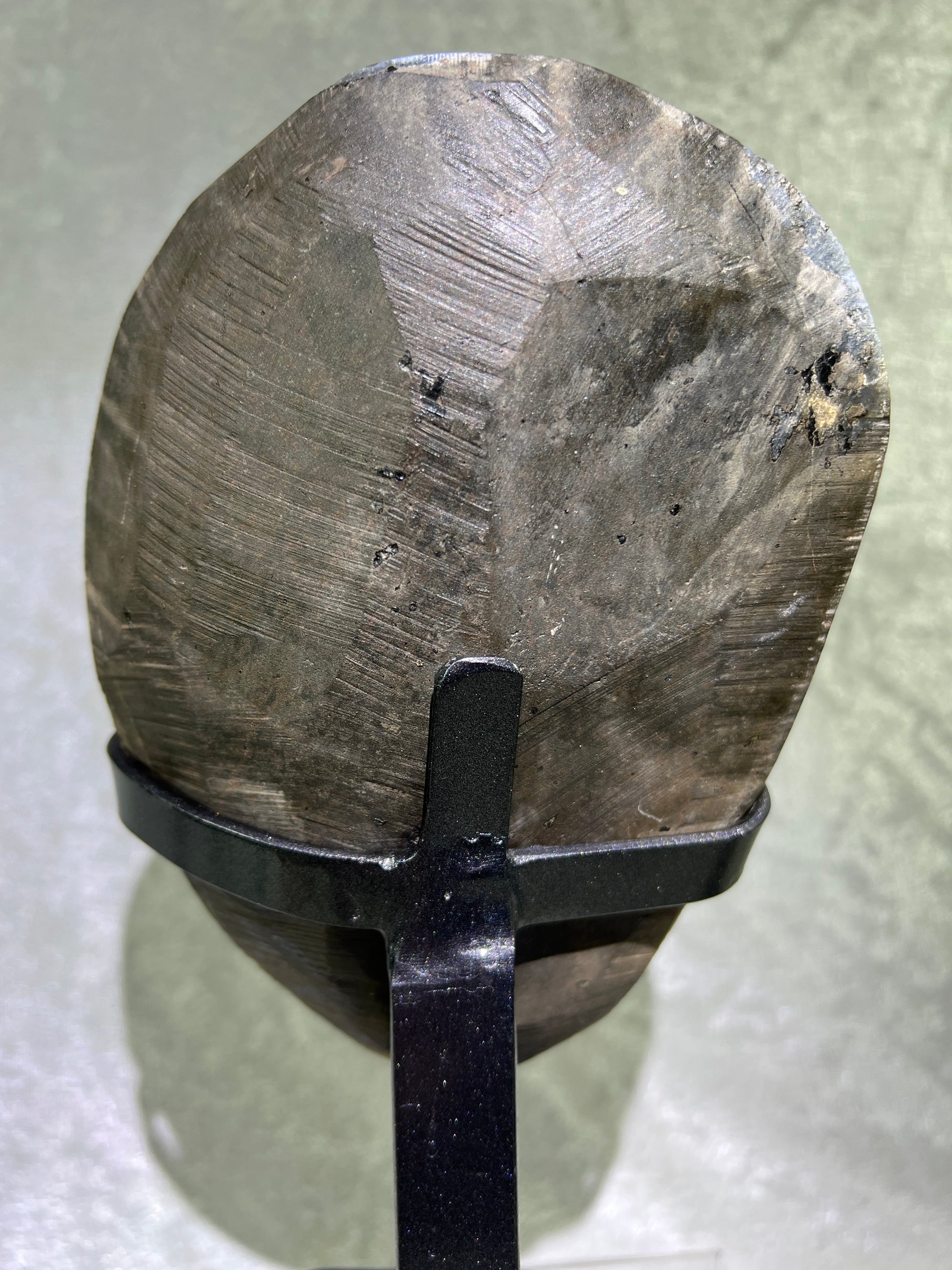 Elevate any space with our Amethyst Geode specimen from the famous Las Torres Mine in Artigas, Uruguay. This gorgeous AA quality specimen boasts a deep purple hue, stunning crystallization, and beautiful colorful banding. Custom made steel stand is included. A true world-class statement piece for any collection. Don’t miss out on this one of a kind display crystal. Sizes and weights are for the crystal only. 9.75 inches tall with stand.