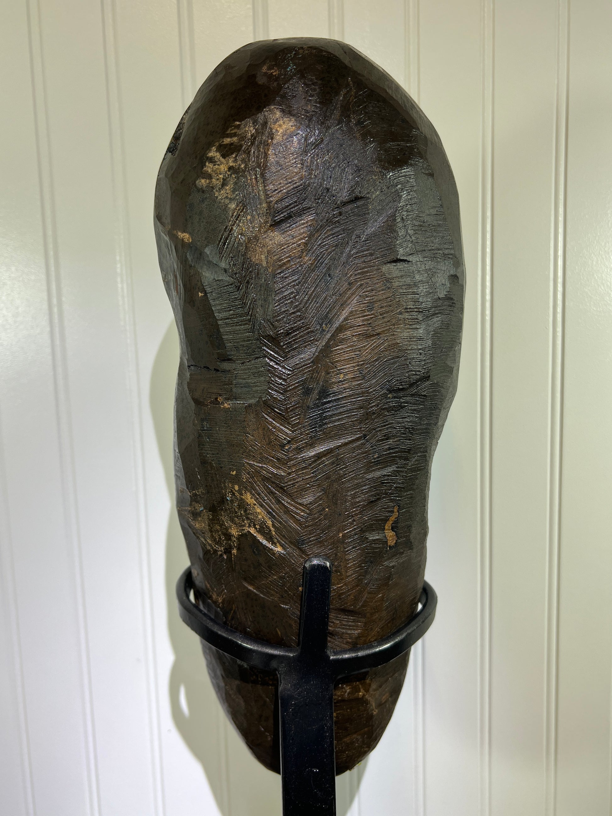 Elevate any space with our massive Amethyst Geode specimen from the famous Las Torres Mine in Artigas, Uruguay. This gorgeous AA quality specimen boasts a deep purple hue, stunning crystallization, and a gorgeous stalactite eye. Custom made steel stand is included. A true world-class statement piece for any collection. Don’t miss out on this one of a kind display crystal. Sizes and weights are for the crystal only. 21 inches tall with stand.