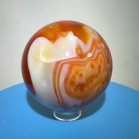 Experience the inspiring beauty of our Carnelian Agate Sphere! Let the vibrant energy of carnelian fill your surroundings and ignite your passion!