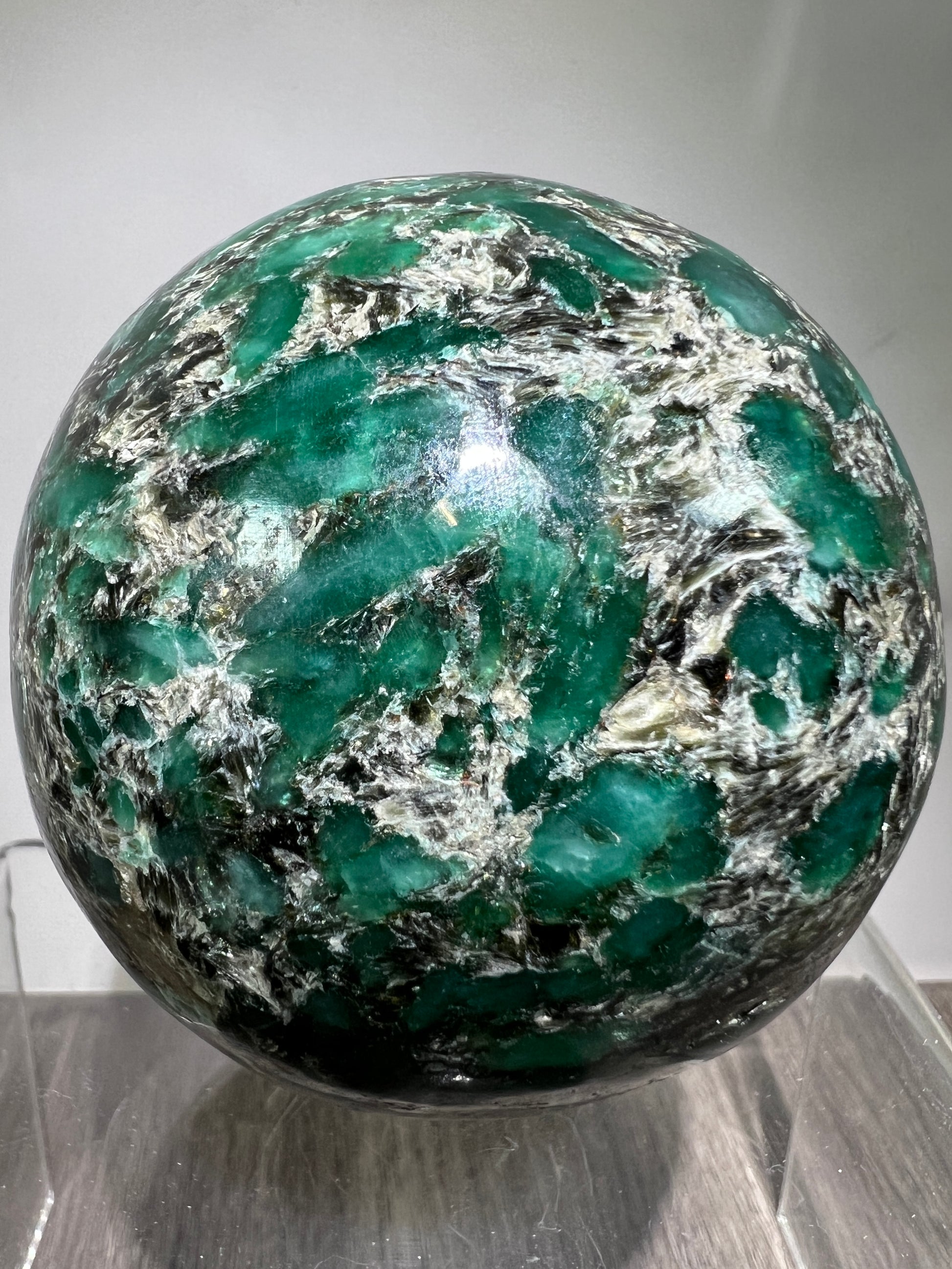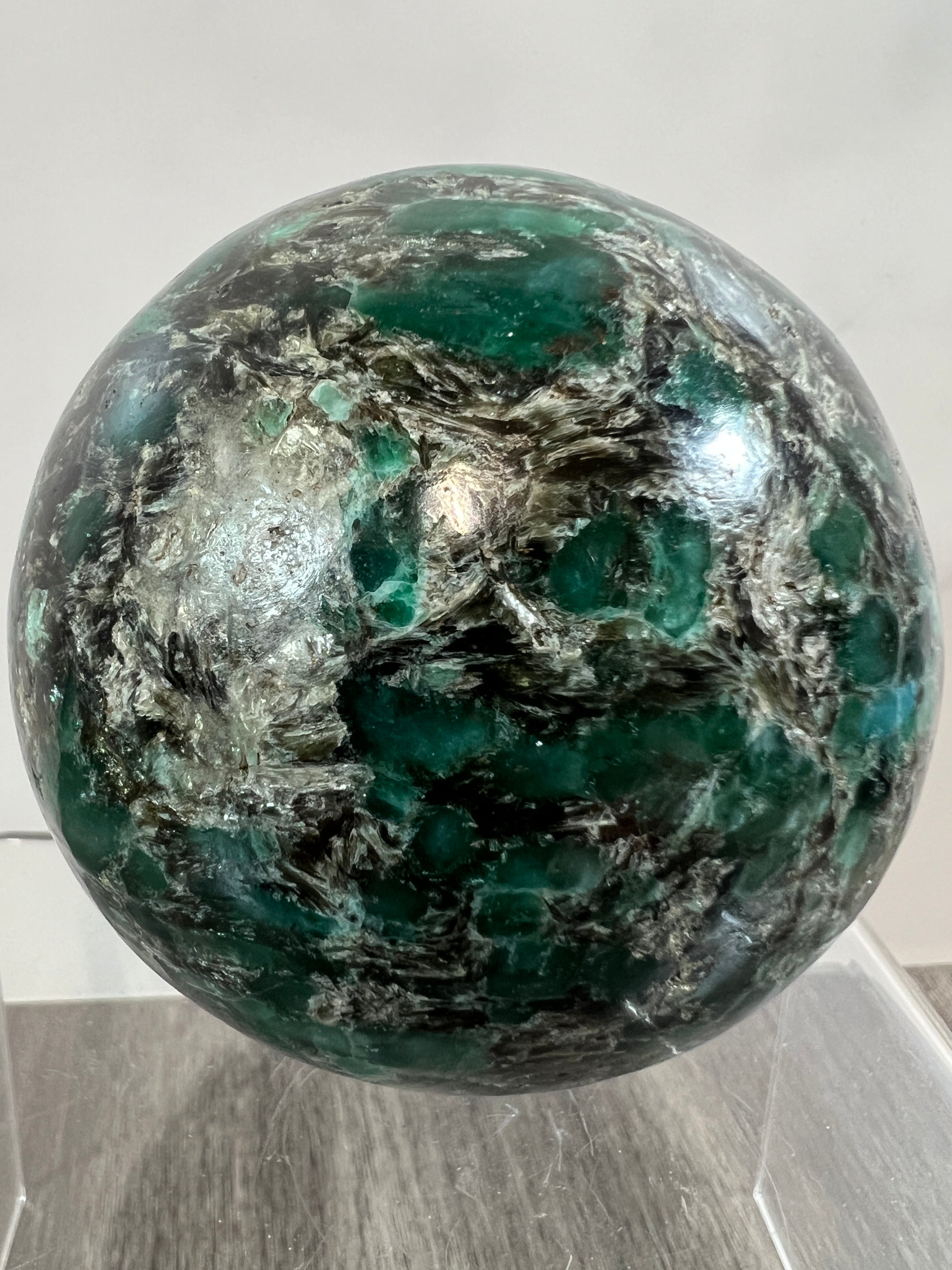 Emerald Mica In Matrix Crystal Sphere. 68mm. Gorgeous Chrome Muscovite From Zimbabwe. Amazing One Of A Kind Rare Display Crystal
