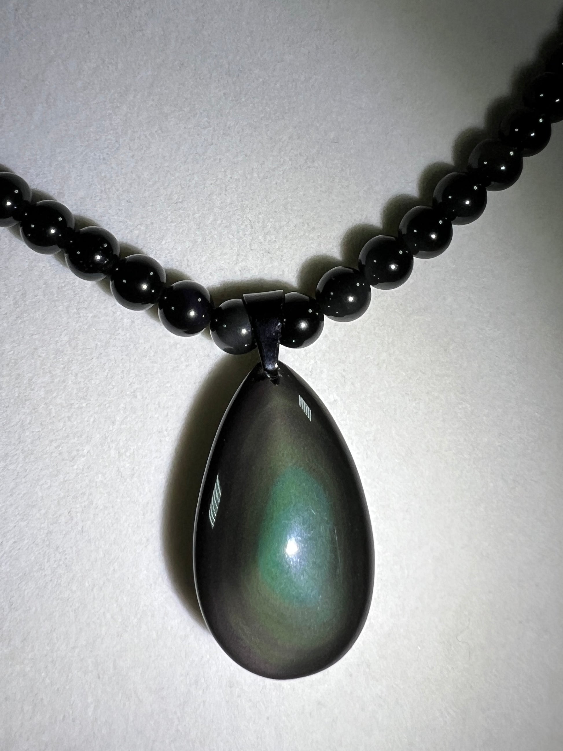 Rainbow Obsidian Pendant. Gorgeous Teardrop Cabochon. Custom Made Beaded Necklace. High Quality Jewelry