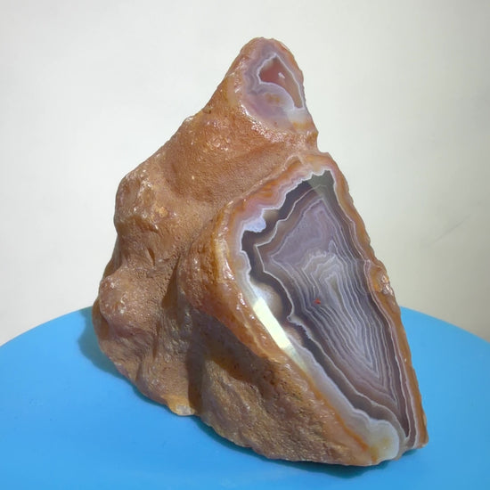 Agate nodules from the Sashe River in Zimbabwe, are renowned for rich blue and pink colors with some pieces having crystalline centers. The Agate from this region is 100% natural in color and no treatment of any nature is used to enhance the coloration. The nodules also tend to have complex banded and stunning patterns with occasional white to cream colored layers in some instances. This is a fairly rare material which is not often worked. Excellent quality A grade material.