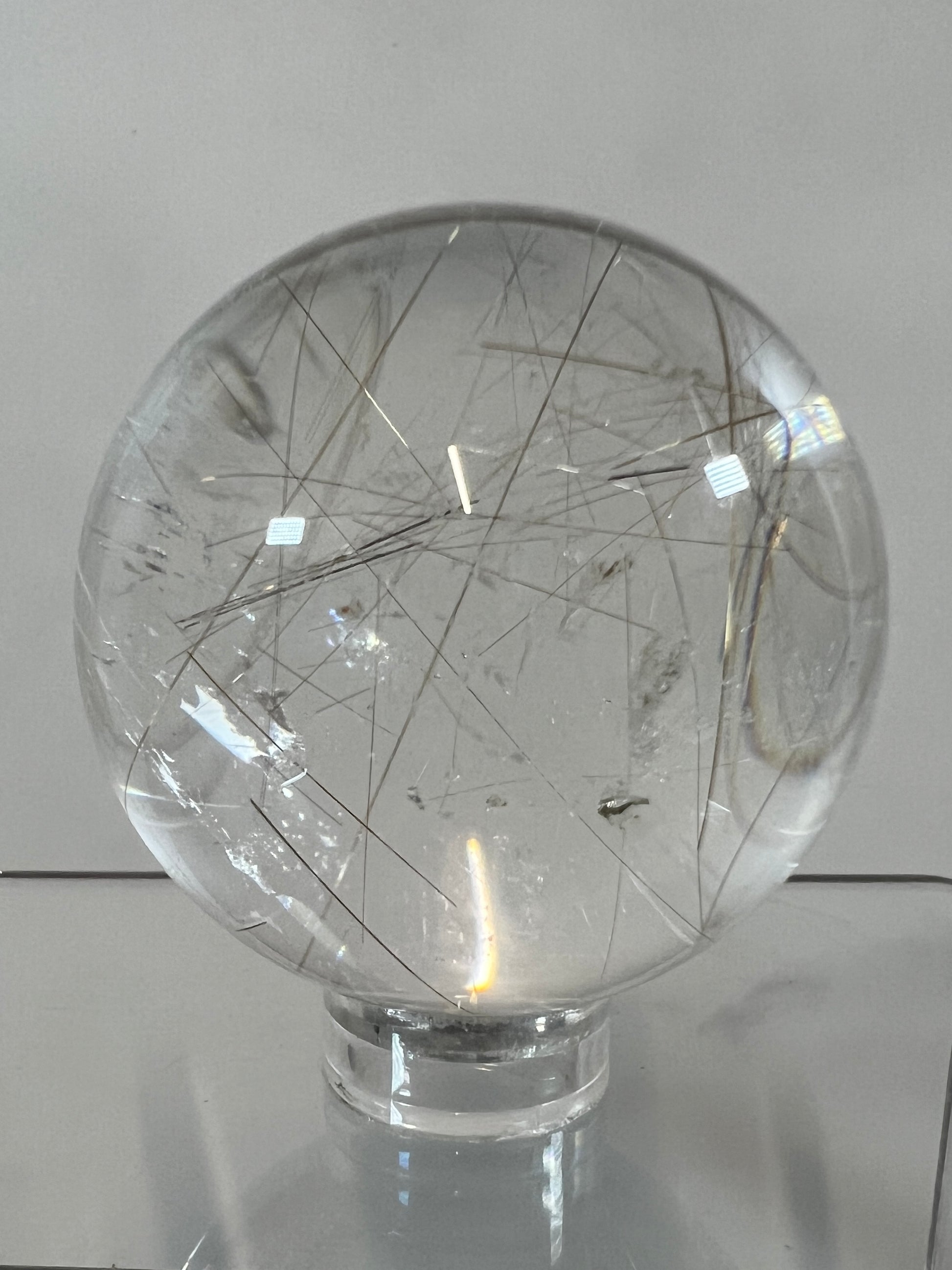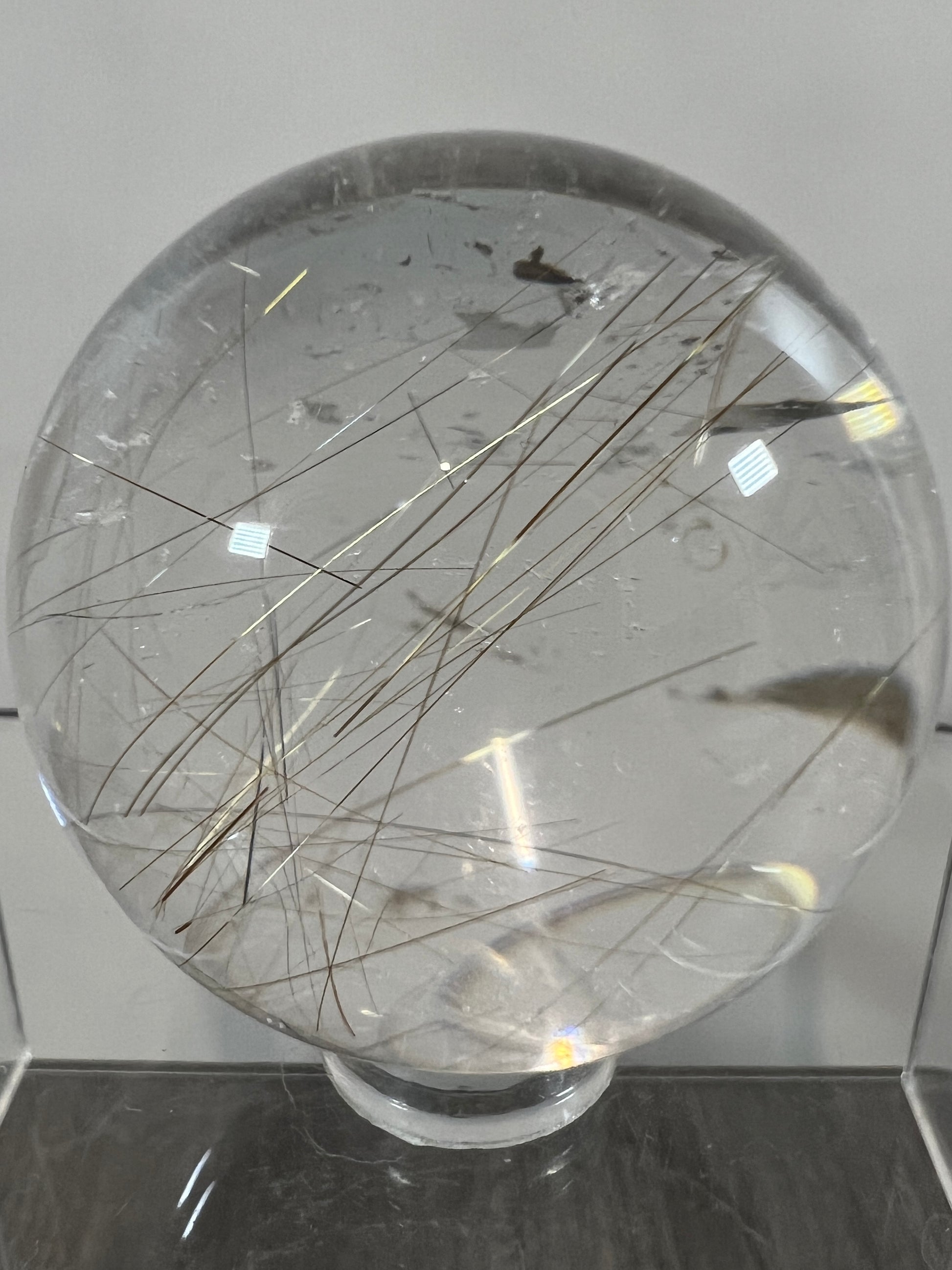 Elevate your space with our luxurious Rutile Quartz Sphere. Expertly crafted with high quality Golden Rutilated Quartz, this stunning display sphere boasts intricate gold rutile inclusions. Bring a touch of sophistication and elegance to any room with this unique and exclusive piece.