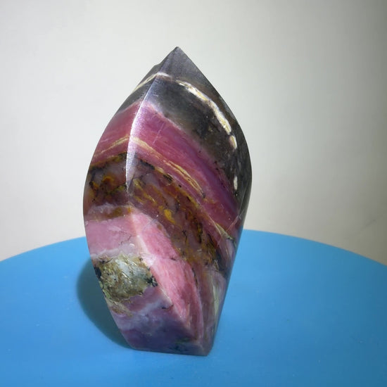 Strawberry Pink Opal Flame From Peru. Gorgeous Bright Colors And Patterns. Rare Display Crystal.