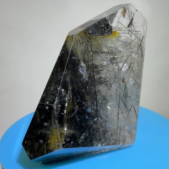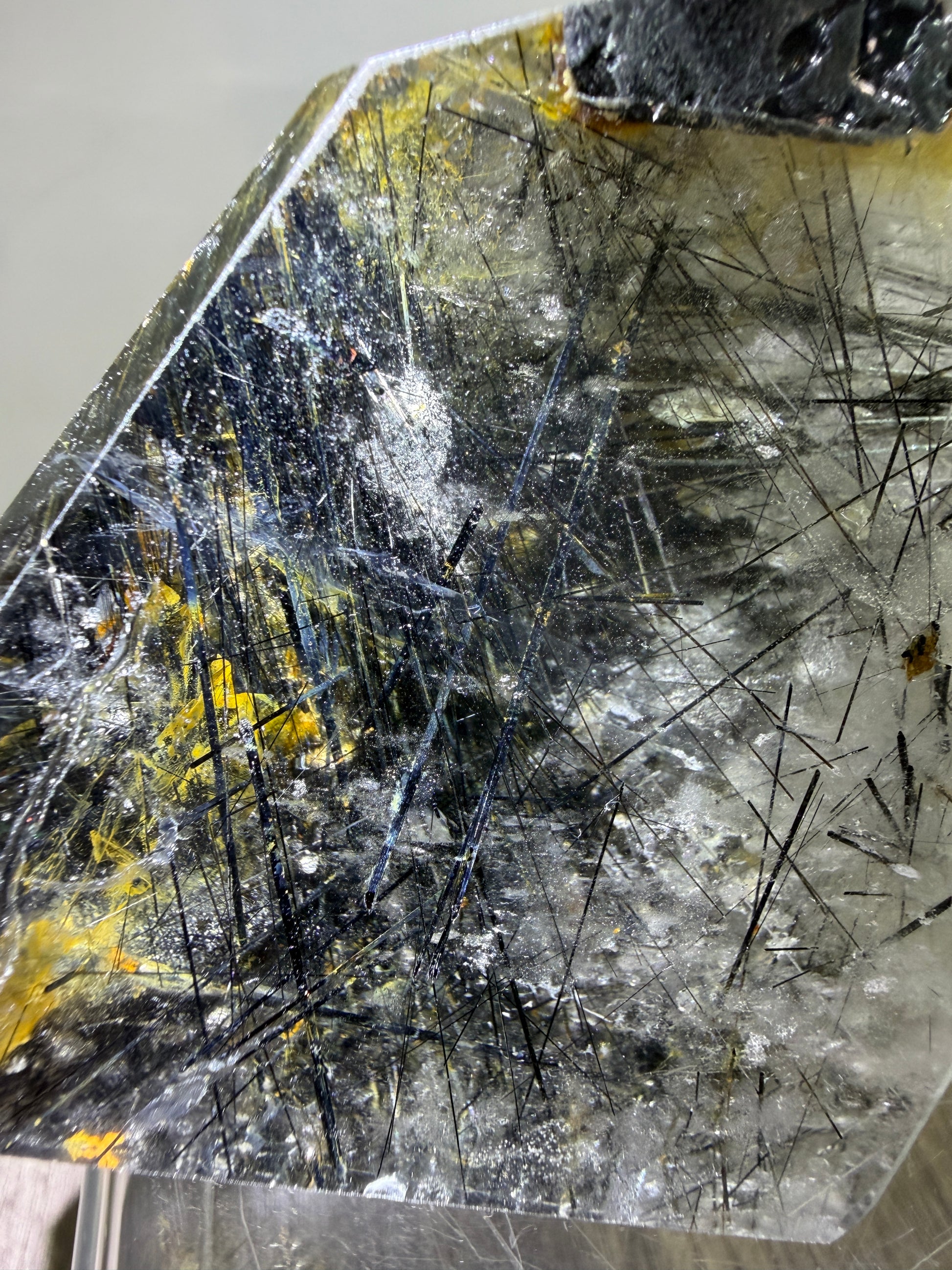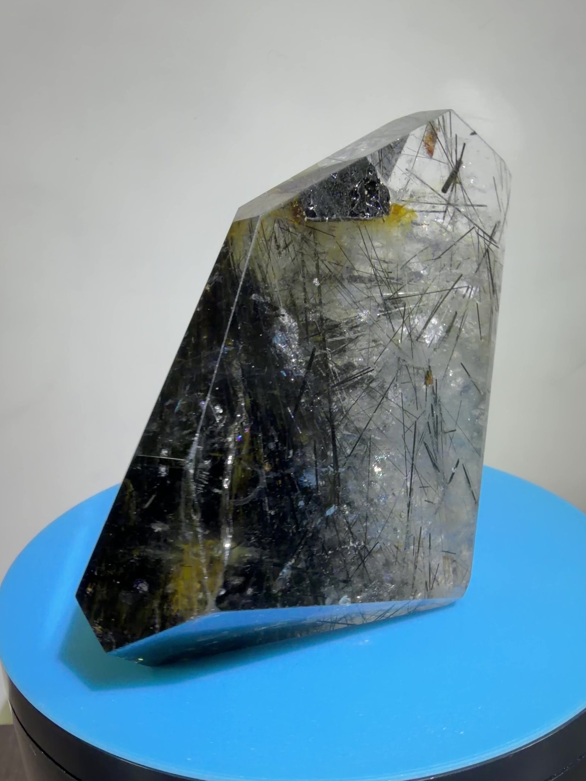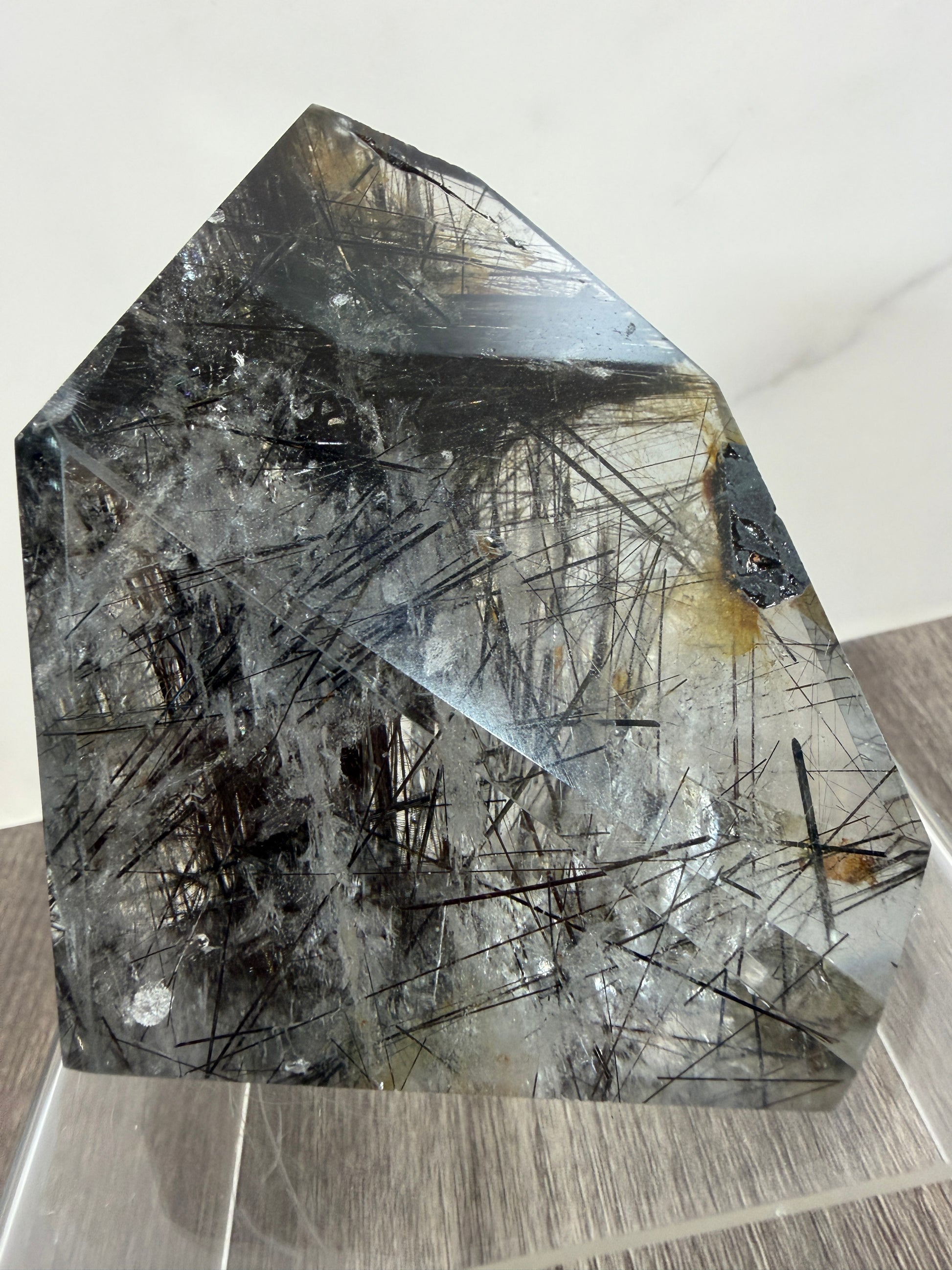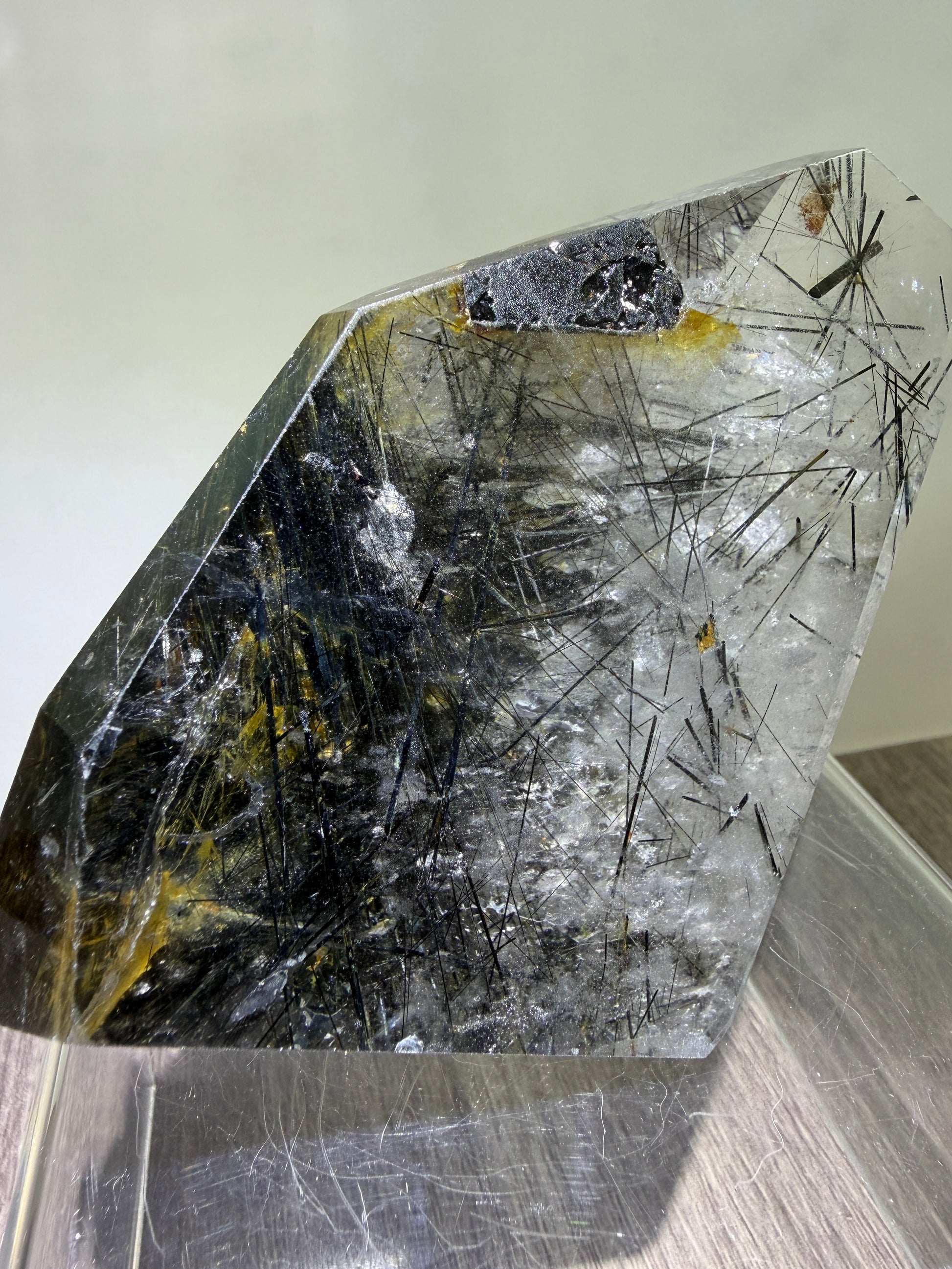Tourmalinated Quartz Polished Freeform. Rare Large Black Tourmaline And Golden Healer.
