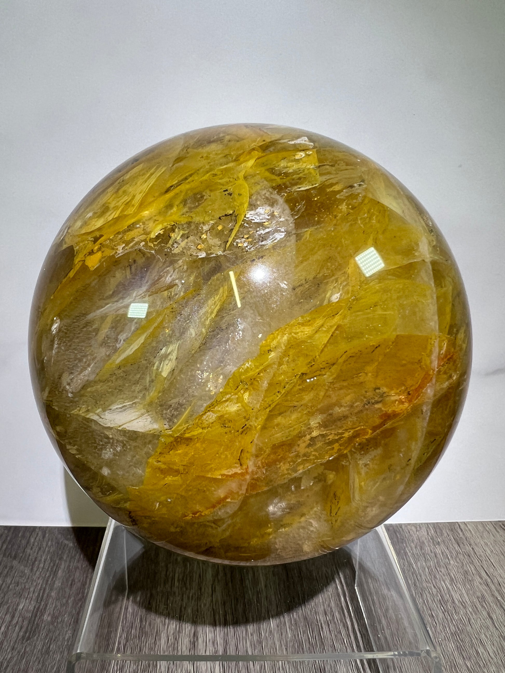 Dendritic Golden Healer Sphere. Huge Display Sphere. 127mm, 6.6 lbs. High Quality With Amazing Dendritic Inclusions.