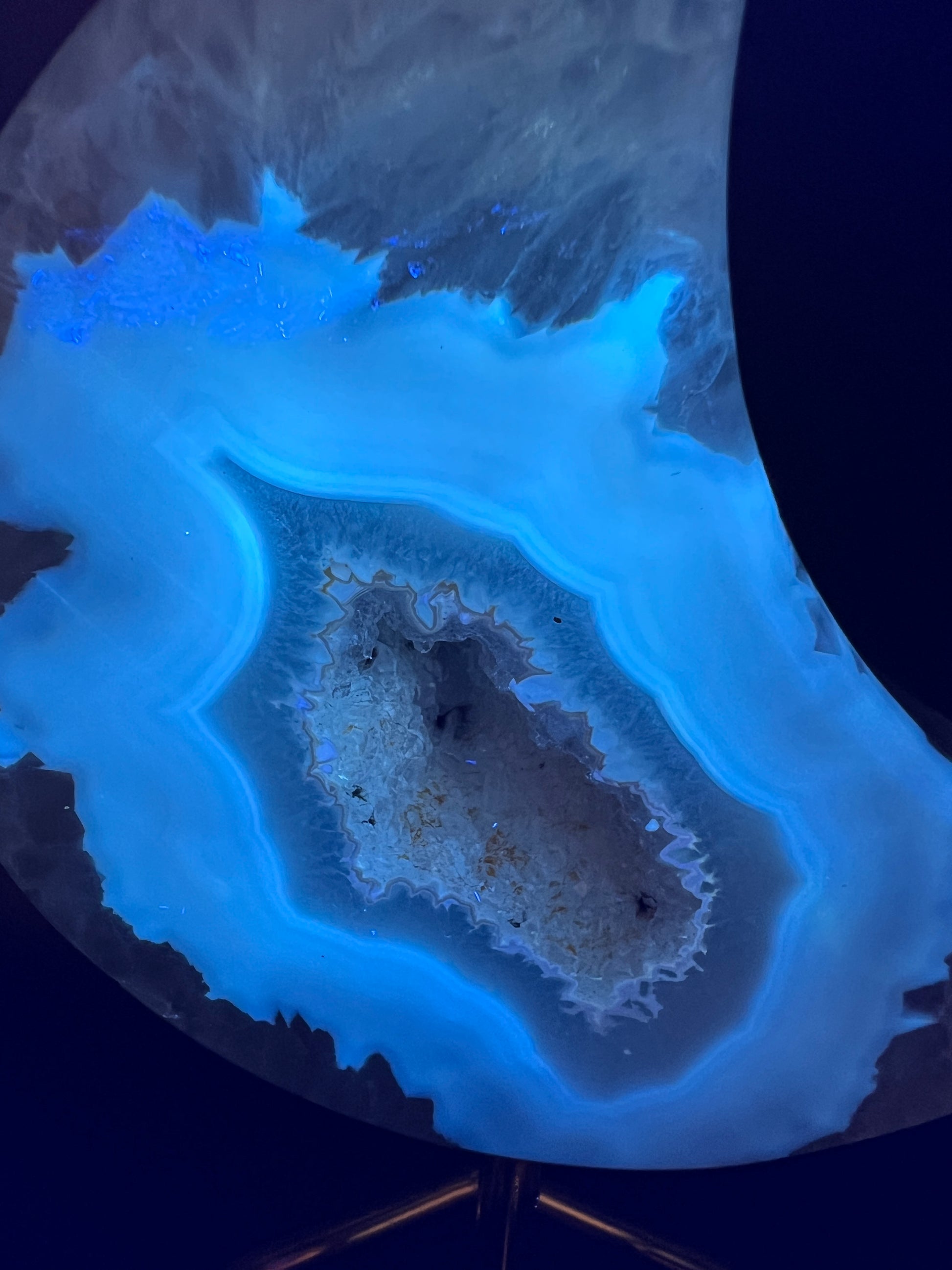 Druzy Agate Moon From Brazil. Gorgeous Sugar Druzy Moon With Custom Stand.