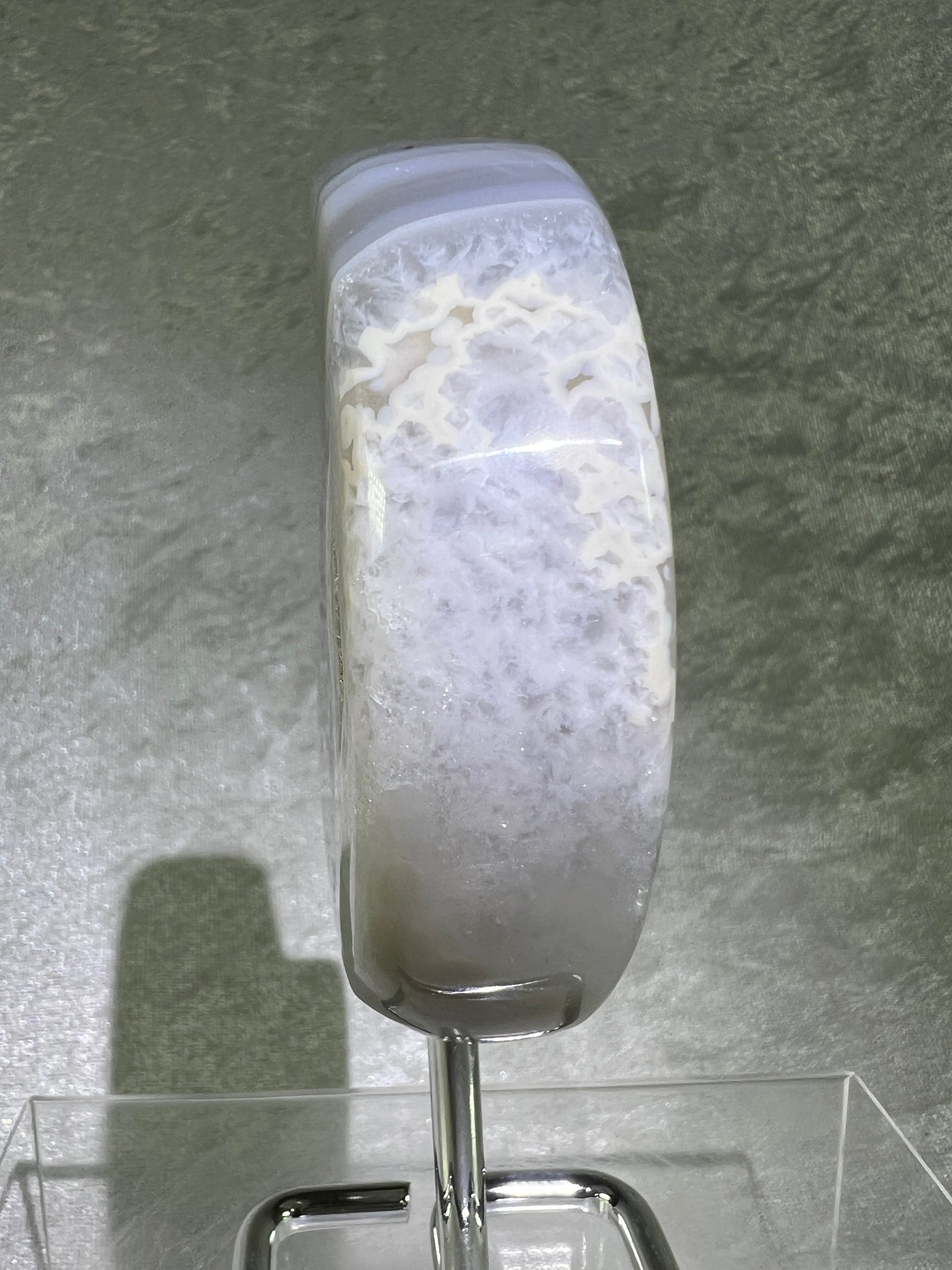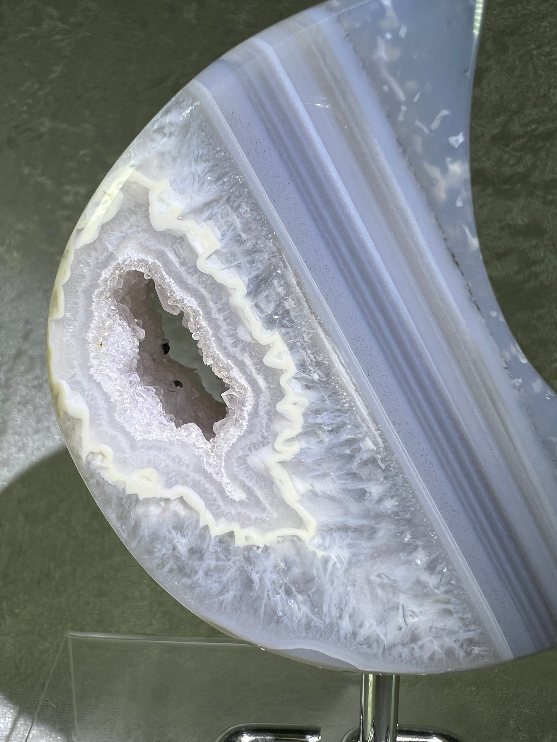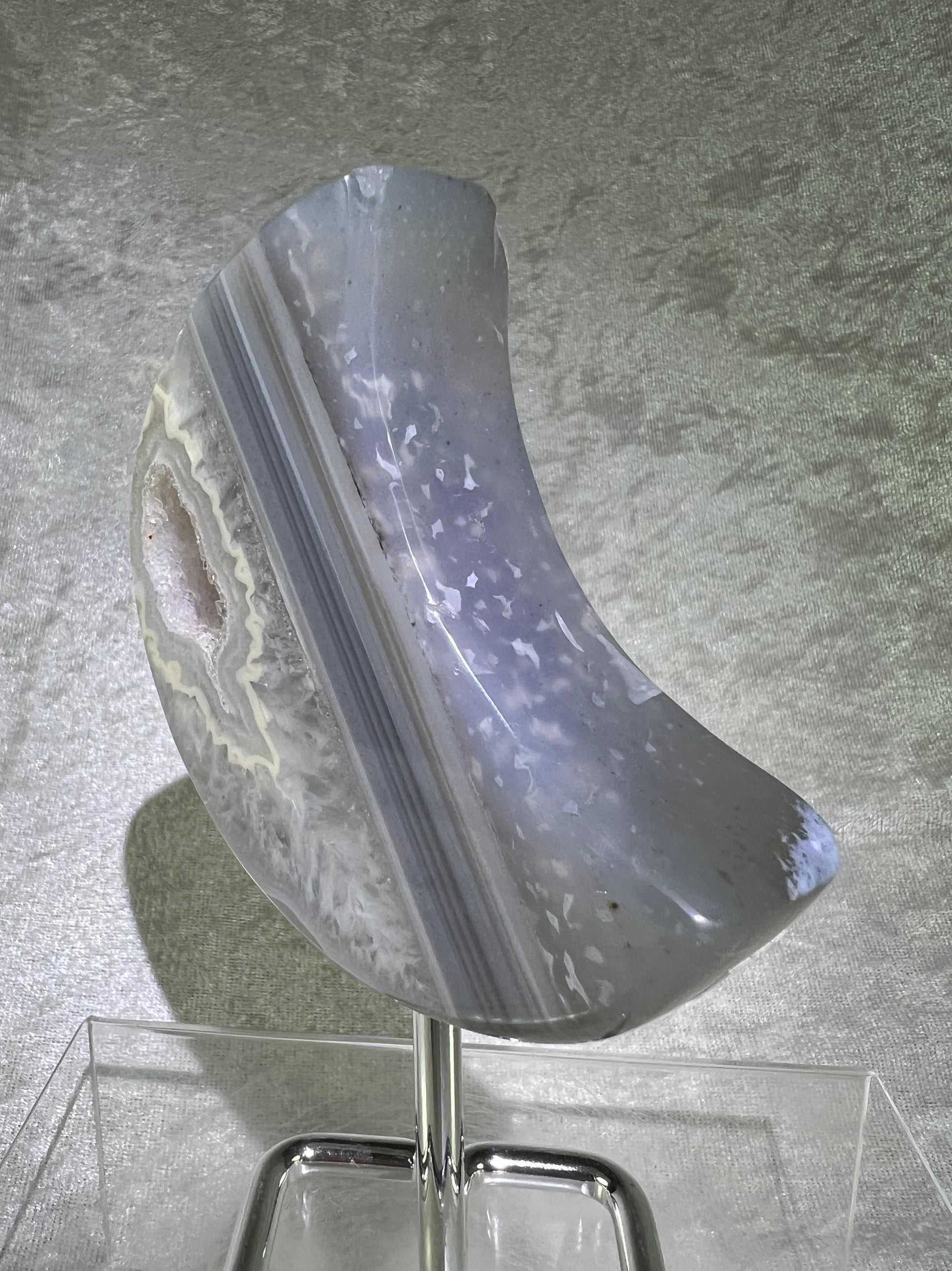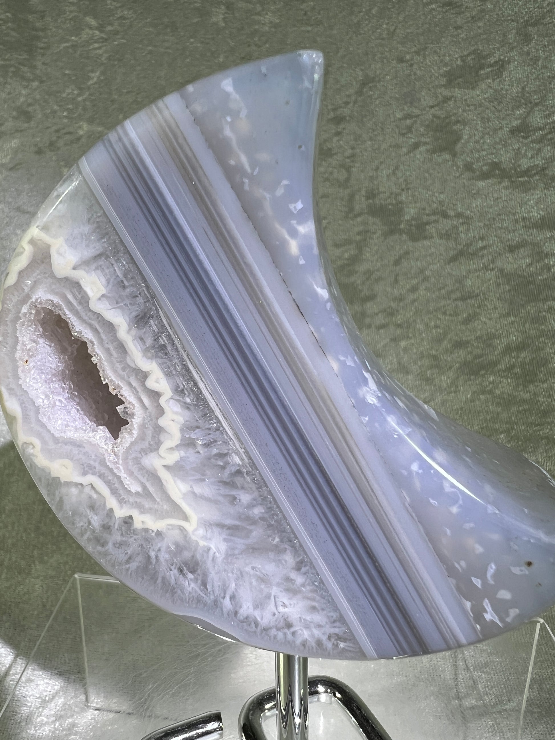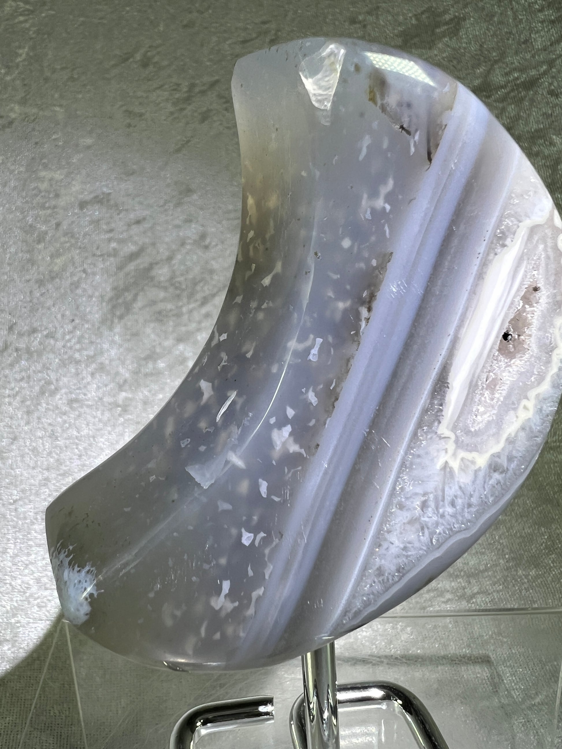 Druzy Agate Moon From Brazil. Gorgeous Sugar Druzy Moon With Custom Stand.
