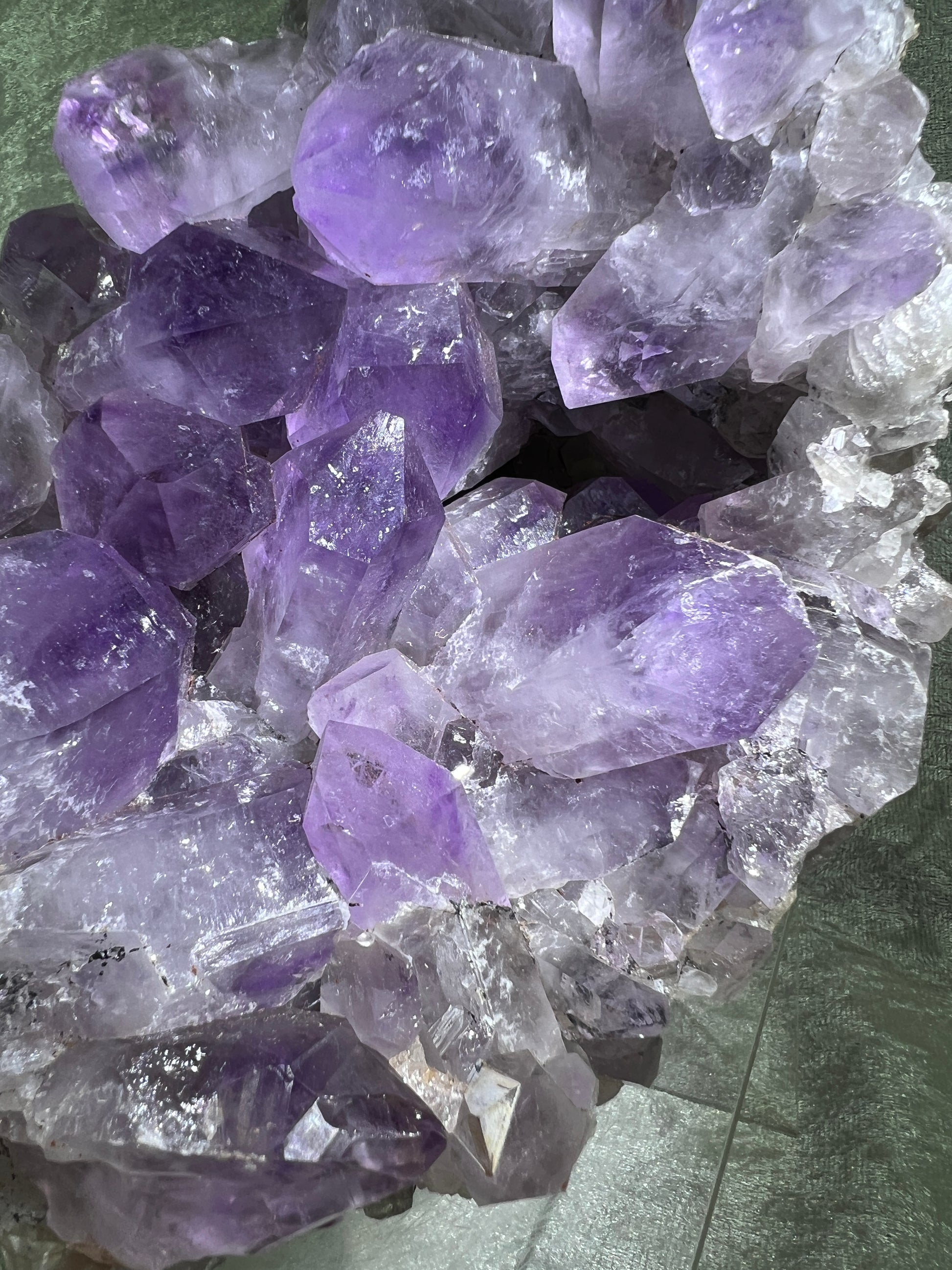Extra Large Jacaranda Amethyst Cluster from Mumbwa, Zambia. Beautiful caves and excellent points. Jacaranda Amethyst specimens from Zambia's Kolomo region are named for their striking resemblance to the vibrant purple hues of the Jacaranda tree. These crystals offer a diverse spectrum of color intensity, transparency, and translucency. Gorgeous Amethyst specimen, perfect for any mineral collection.