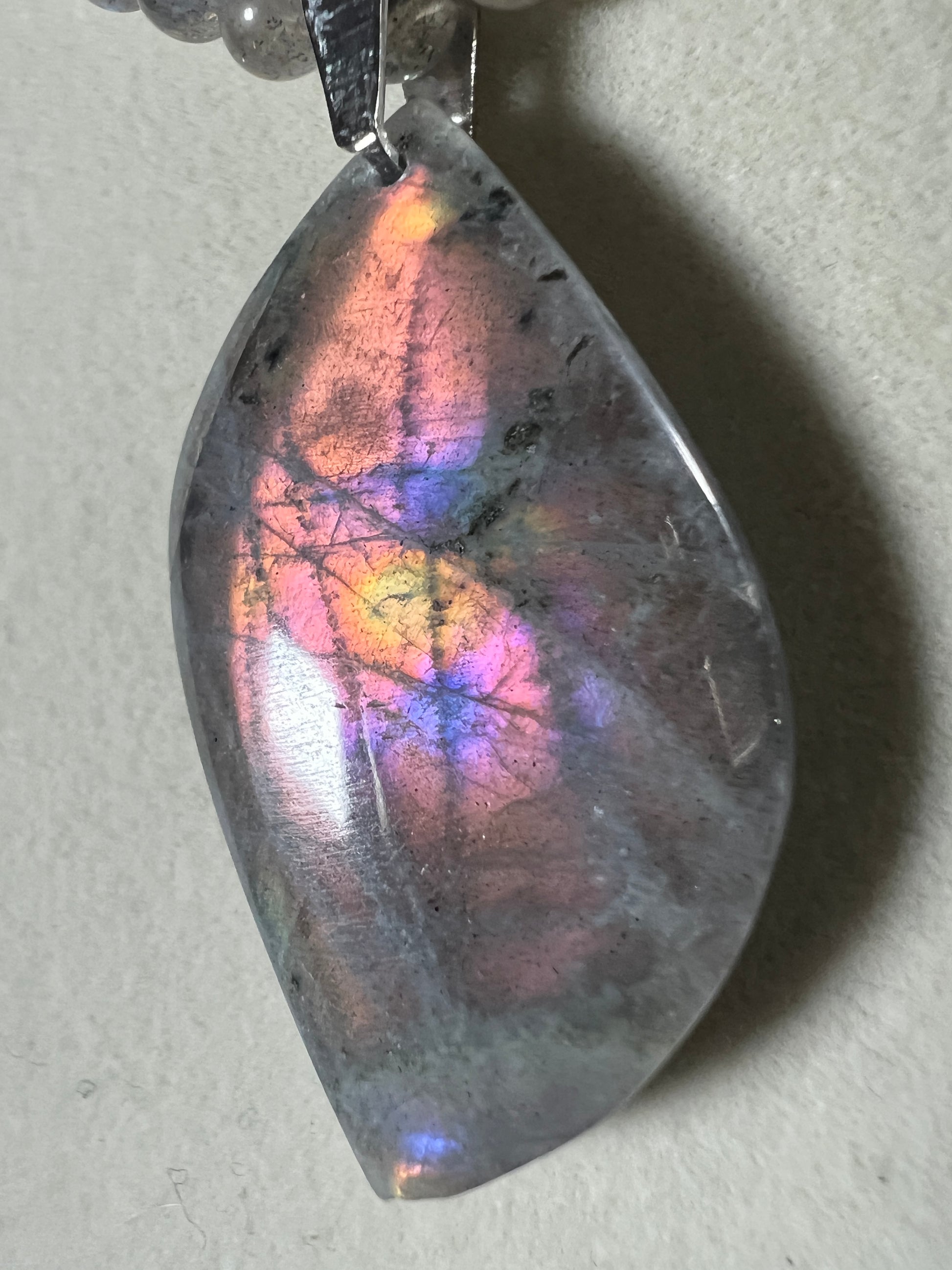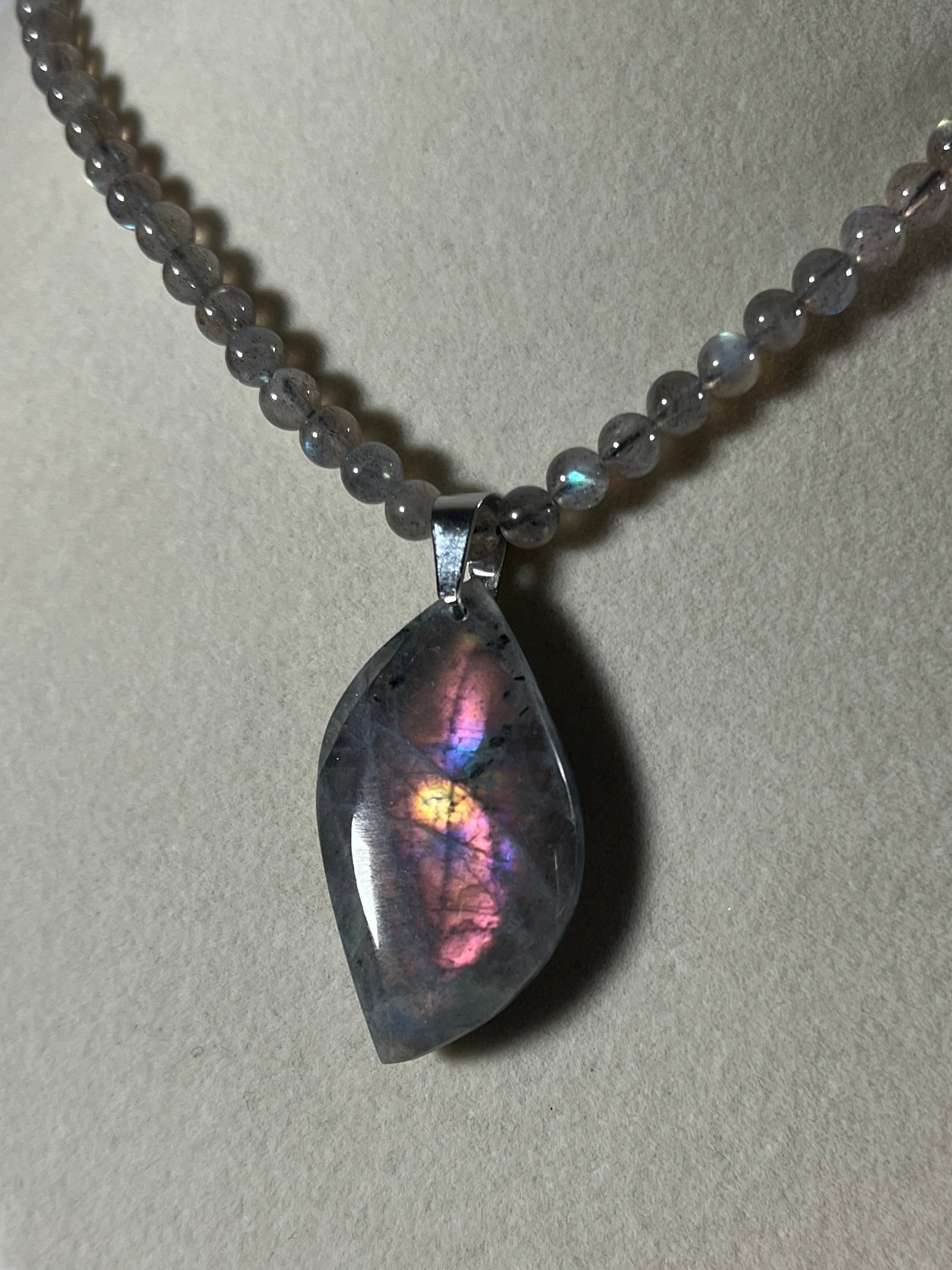 Labradorite Crystal Pendant. Stunning High Quality Jewelry. Custom Made Labradorite Beaded Necklace