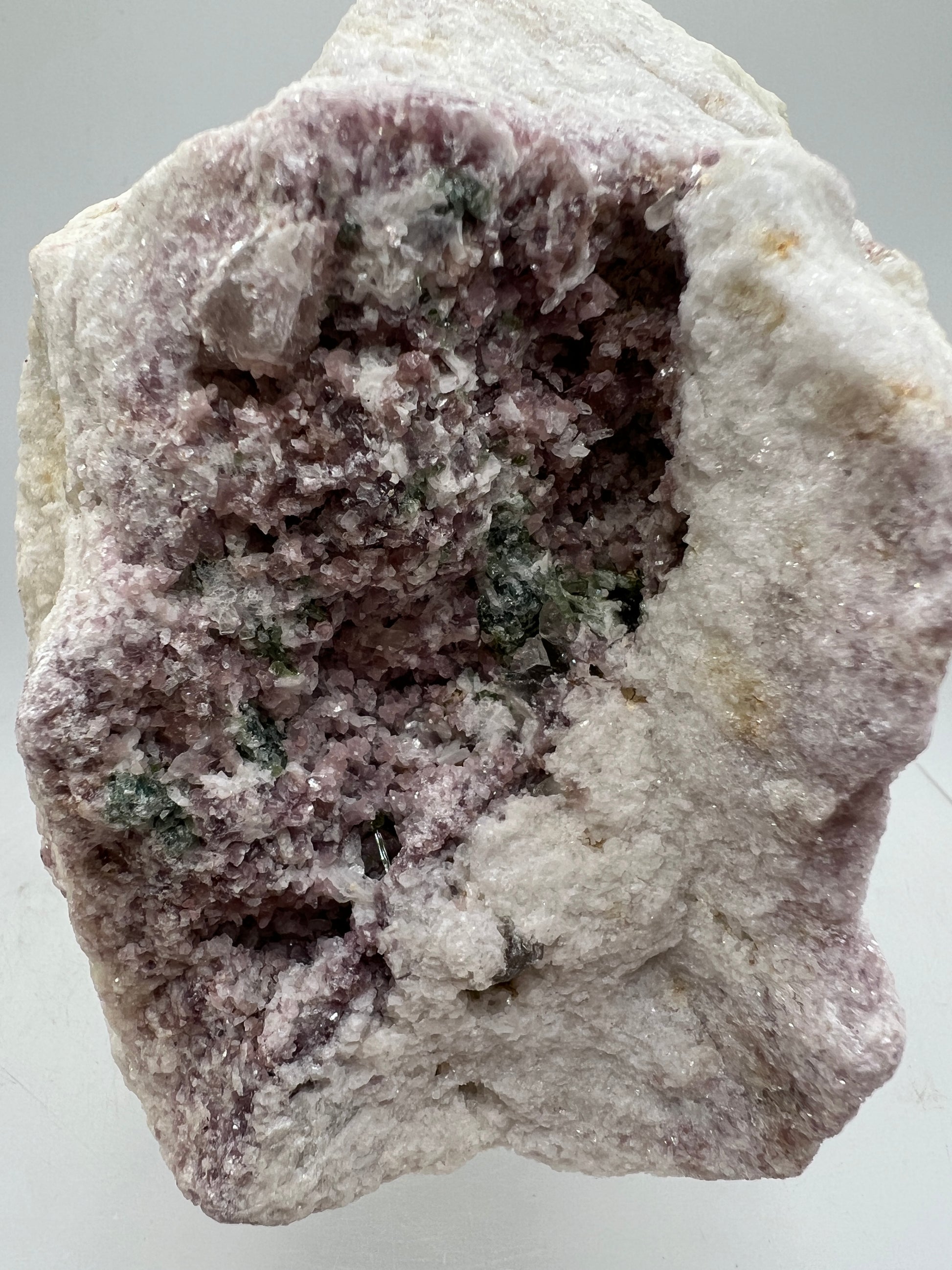 Lepidolite and Green Tourmaline Specimen. Gorgeous Mineral Cluster From Brazil. Lots Of Flash And Crystallization. Beautiful Color Contrasts.