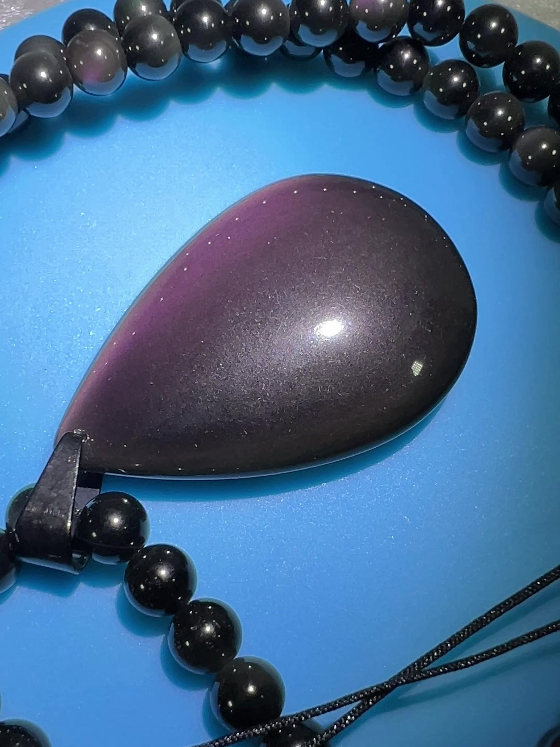 Rainbow Obsidian Pendant. Gorgeous Teardrop Cabochon. Custom Made Beaded Necklace. High Quality Jewelry