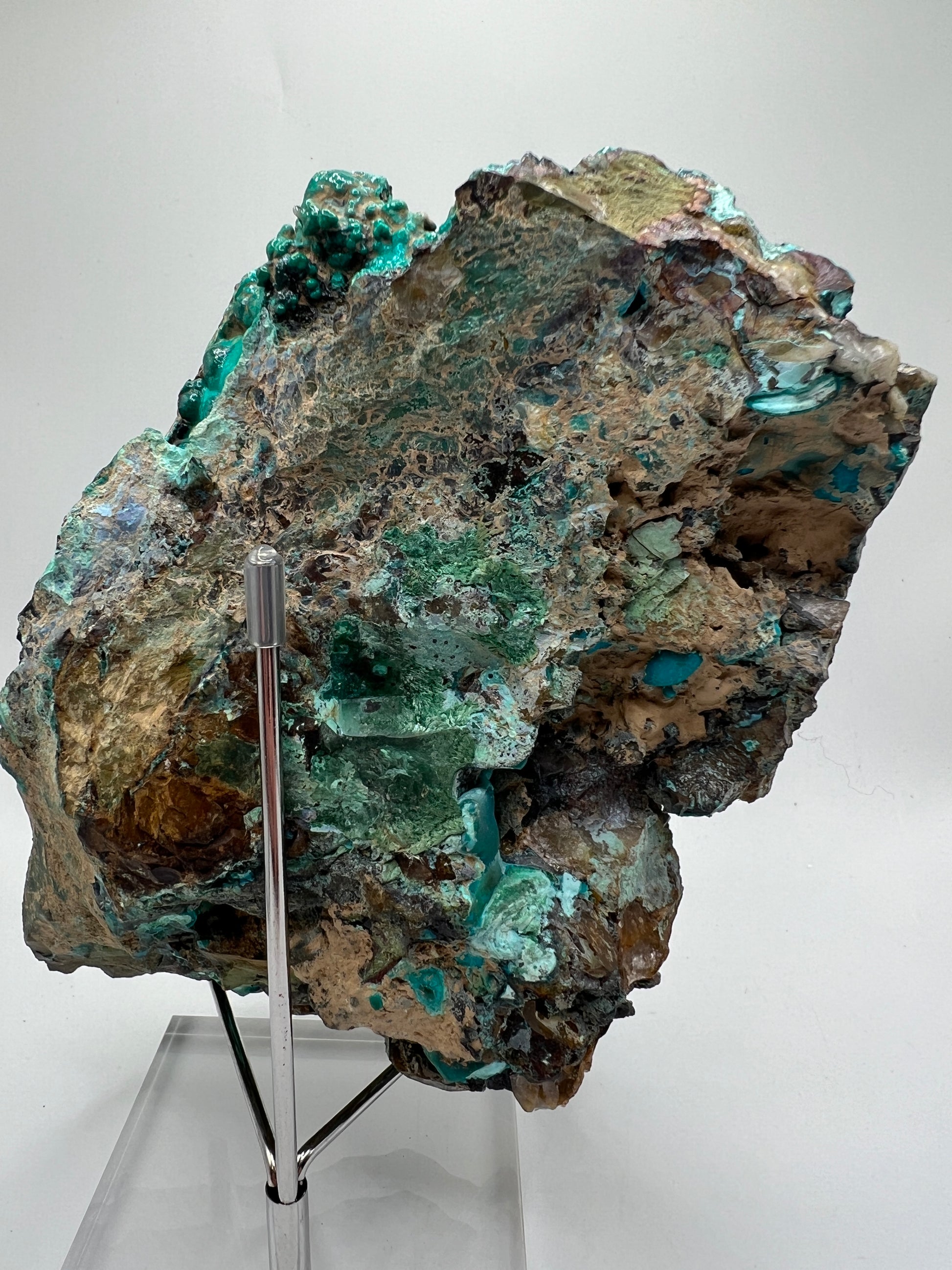 Silica Chrysocolla Specimen. Very Rare Display Crystal. High Quality Botryoidal Bubblegum Chrysocolla, Malachite, And Heterogenite.